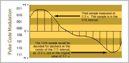 a)How big is a single interval in volts? b) If there were 512 levels in the PCM encoder, how many bits would the sample above represent? HINT: L=2n c) Receivers have no choice but to decode the the